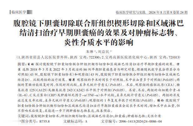 参考良友:[1]朱琳,腹腔镜下胆囊切除集合肝组织楔形切除和区域淋巴 结清扫支援早期胆囊癌的后果及对肿瘤秀雅物、 炎性介质水平的影响,临床医学连系与扩充,2024-08-21